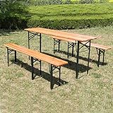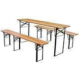 BIRCHTREE Outdoor Wood Wooden Vintage Folding Beer Table Bench Set Trestle Party Picnic Pub Garden Furniture Steel Leg