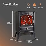 VonHaus Electric Stove Heater 1800W - Indoor Log/Wood Burner/Burning Effect, Free Standing Fire, Portable Fireplace, LED Flame, 2 Heat Settings, Adjustable Thermostat, Black - H52 x W38 x D26cm