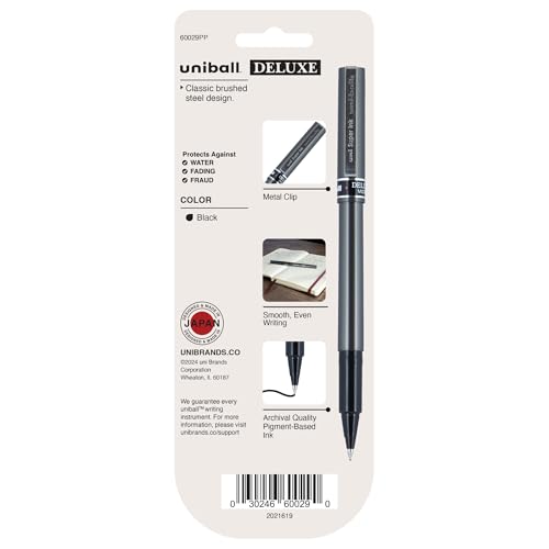 uni-ball Deluxe Rollerball Pens, Micro Point (0.5mm), Black, 3 Count