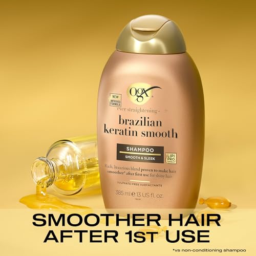 OGX Ever Straightening with Brazilian Keratin Smooth Shampoo, Smooth & Sleek, Makes Hair Smoother After the First Use, for Shiny Hair, Sulfate Free, 385ml