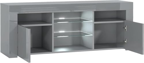 Furneo (Blue LED Lights) Grey Living Room Set TV Stand Display Cabinets High Gloss & Ma