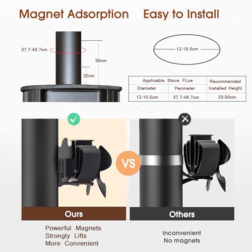 Drcokars Stove Fan, Log Burner Fan, Magnetic Chimney Fan Silent, 4 Blade Heat Po