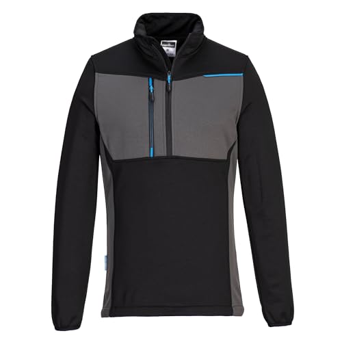 Portwest T755 WX3 Half Zip Tech Fleece Anti Snag Polyester 255g Durable Anti Pill Fabric Secure Zipped Chest Pocket Bound Cuffs Layering Comfort Professional Workwear, Black, XXXL