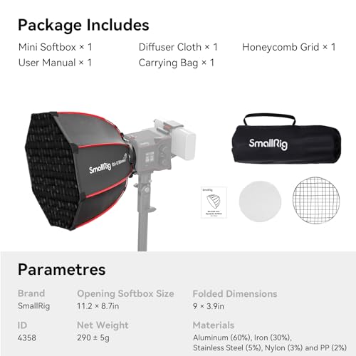 SMALLRIG mini Parabolic Softbox RA-D30 29cm Quick Release, Only Compatible with SmallRig RC 60B COB LED Video Light, RC 60C RGB COB Video Light - 4358