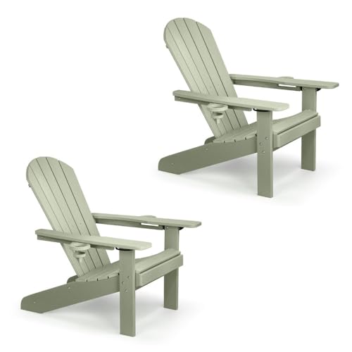 VonHaus Sage Green Adirondack Chair Set of 2 - Reclining Slatted Style Garden Chair with Cup & Phone Holders - Durable Weather Resistant HDPE Plastic Outdoor Armchair for Patio & Decking - Westport