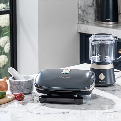 Salter Marino Health Grill - Smokeless Electric Griddle, Indoor Panini Press, Removable Drip Tray, Non-Stick Plates, Healthy Cooking With Little To No Oil, Automatic Temperature Control, Blue Grey