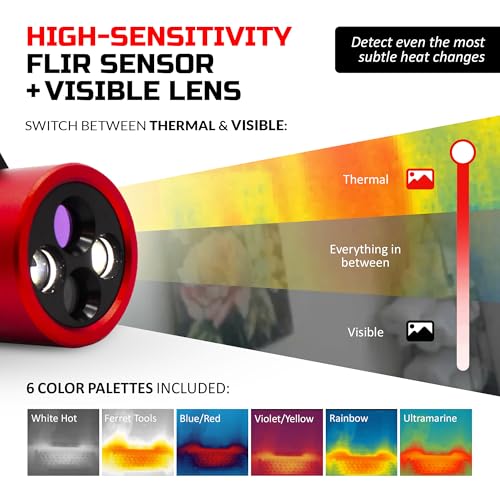 Ferret Thermal Wireless Imaging Camera. 640x480 TISR Resolution (160x120 Native IR). WiFi Hotspot, Rechargeable. Visible, Thermal & Everything in Between. Attach to Rod for Extended Reach. Free App