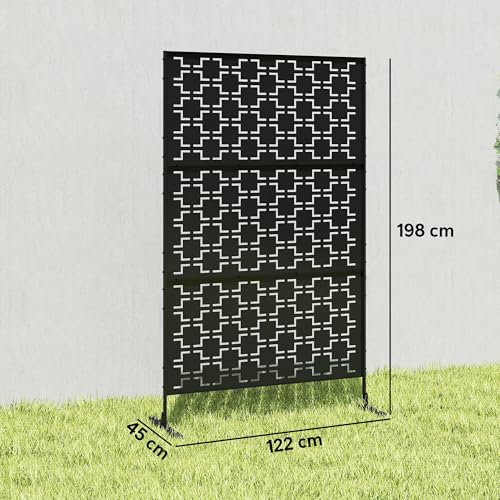 Outsunny Metal Decorative Privacy Screen Outdoor Divider, Black Grid Aosom UK