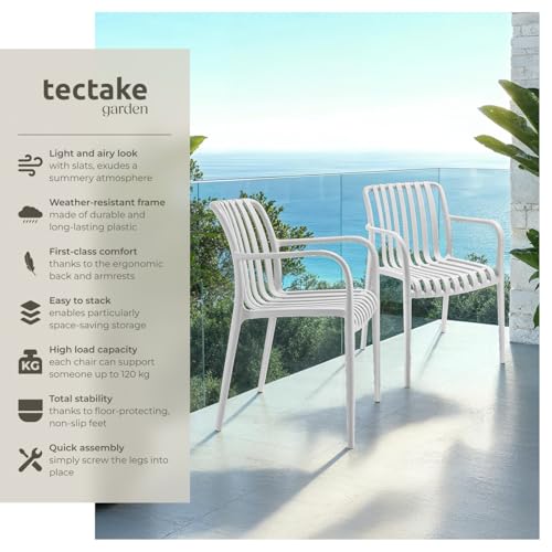 tectake® Set of 4 Garden Chairs in Light, Airy Design, Garden Chair Set in Weather-Resistant Plastic with Slatted, Curved Seat, Stackable Outdoor Armchair Set for Backyard, Patio, Balcony - Cream