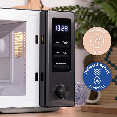 Russell Hobbs Digital Microwave 23 Litre 900W Dark Steel with 8 Auto Cook Menus & Defrost Function, 5 Power Levels, Integrated Timer, Mirror Door & Easy Clean RHM2372DS