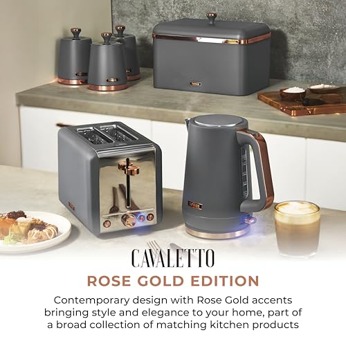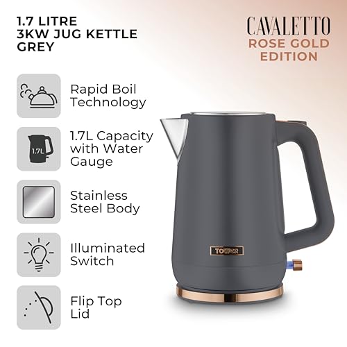 Tower Cavaletto 1.7L Jug Kettle with 3KW Rapid Boil, 360° Swivel Base, Removable Filter, Water Gauge, Illuminated Switch, Grey & Rose Gold, T10100RGG