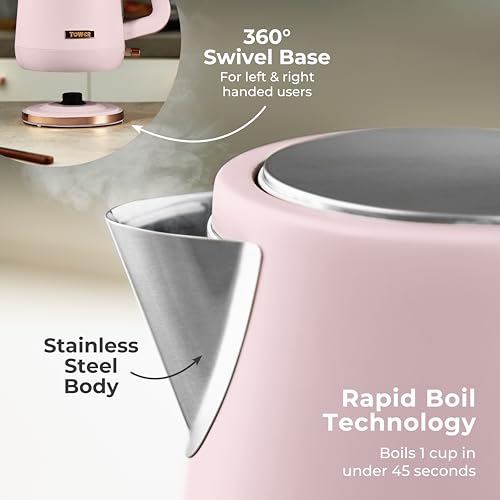Tower Cavaletto 1.7L Kettle 3KW Rapid Boil | 360° Swivel Base | Pink & Rose Gold