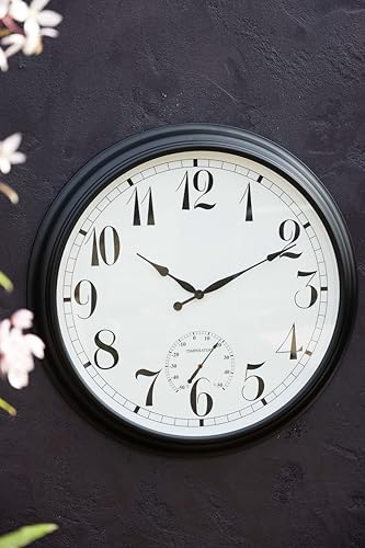 About Time Big Time Outdoor Garden Clock with Thermometer - Black - 90cm (35.4")