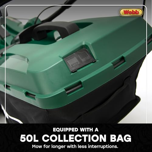 Webb Classic WEER40 Electric Rotary Lawnmower with 5 Cutting Heights, 40cm Cutting Width and 50L Collection Bag - 3 Year Guarantee