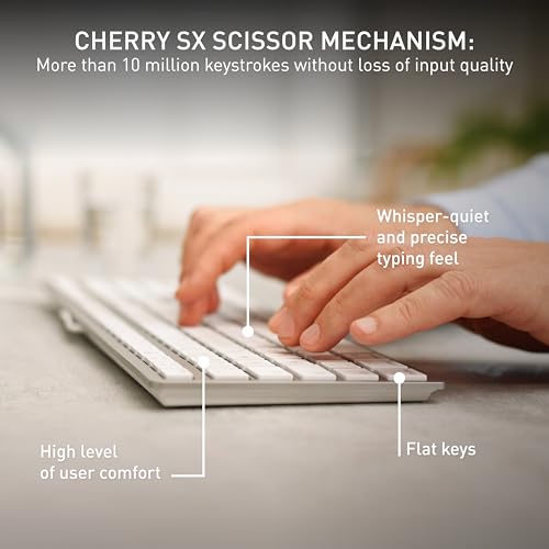 CHERRY KC 6000 SLIM FOR MAC, Wired Mac Keyboard (USB-A Connection), UK Layout (QWERTY), Whisper-Quiet Keys, Flat Design, Silver/White