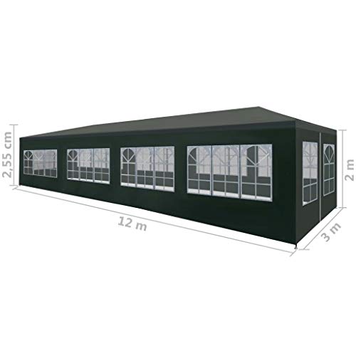 vidaXL Party Tent 3x12m Green Outdoor Garden Gazebo Marquee Canopy Shelter