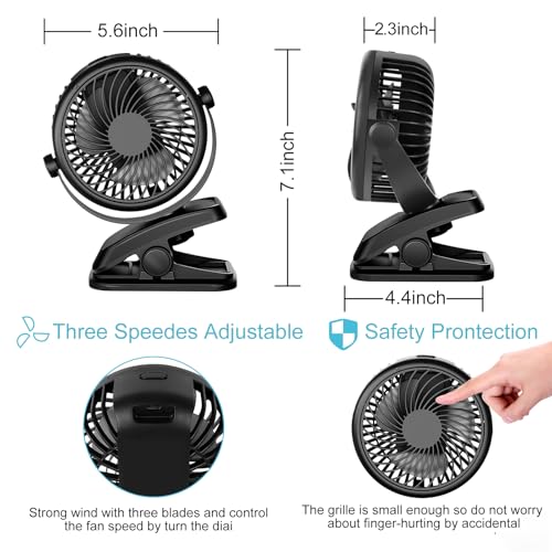 USB Fan, Telgoner Quiet Portable Clip Personal Mini Desk Fan with Rechargeble Ba