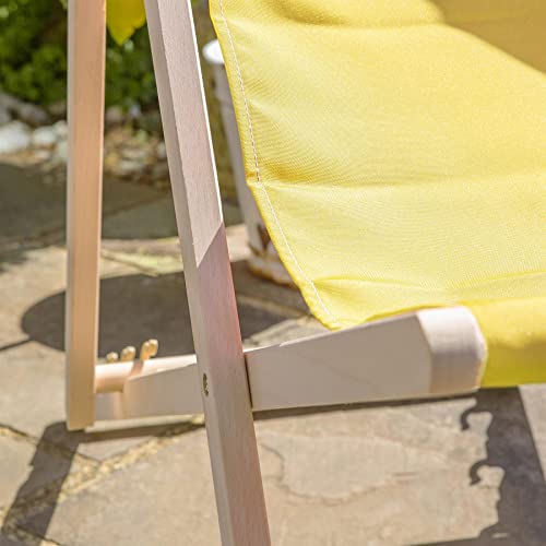 Harbour Housewares Folding Wooden Deck Chairs – Yellow – Pack of 4 – Adults Traditional Foldable Reclining Outdoor Canvas Sun Lounger Chair Seat for Garden Patio, Beach, Camping