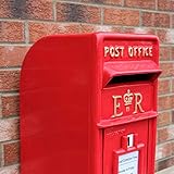 Royal Mail Post Box with Floor Stand ER Cast Iron Wall Mounted Wedding Authentic Pillar Replica Lockable Post Office Letter Box Red