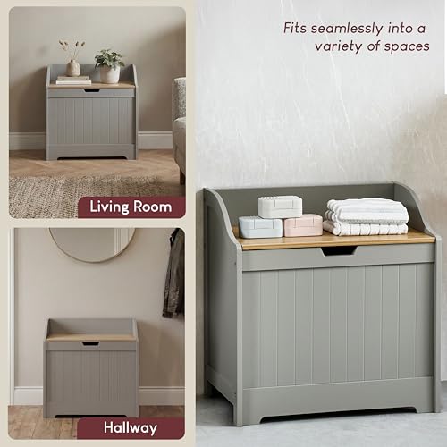 Bath Vida Priano Bathroom Laundry Chest | Grey & Oak | Space-Saving Storage | 58H x 56W x 38D cm | Space-Saving Storage | Freestanding | Towel Clothes Storage | Modern Wooden Storage Unit