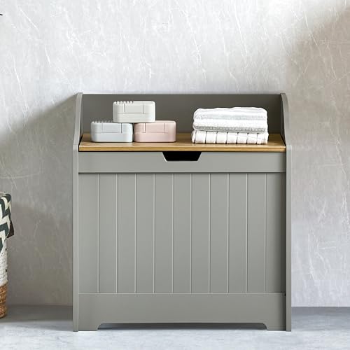 Priano Bathroom Laundry Chest Basket Hamper Washing Clothes Storage Bin Grey