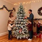 10ft/3m Pre-Lit Artificial Christmas Tree Lapland Fir - 540 LED Warm White Lights, Snow Flocked 2521 PE/PVC Tips, Snowy Bushy Hinged Branches, Metal Stand for Xmas Home Decorations