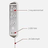 brennenstuhl estilo Corner Extension Lead 3-way (Extension Cord with Stainless Steel Surface for Desk/Kitchen/Office, with 3x Earthed Sockets, 2x USB Ports) silver/white
