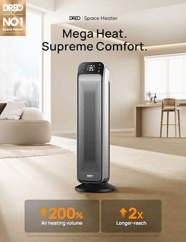 Dreo 25 Inch Electric Heaters for Home, 70° Oscillating Fan Heater with Remote, 25dB Silent Ceramic Space Heater for Large Room, Low Energy, 3-Mode 3-Speed, Timer, Overheating&Tip-Over Protection