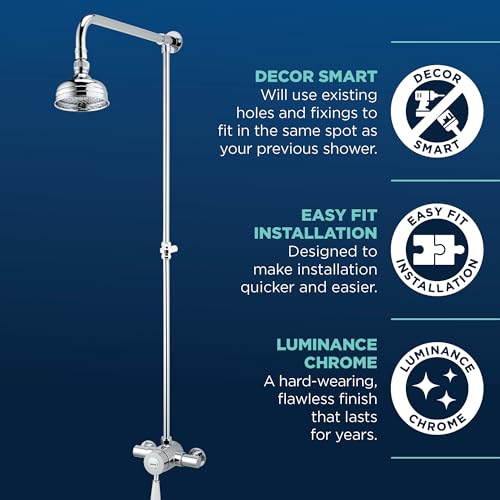 Bristan Colonial 2 Thermostatic Mixer Shower Valve with Fixed Riser and Rain Shower Head, Traditional Rose Shower Tap Bathroom Fixture for High and Low Pressure Systems, Chrome - KN2 SHXRR C