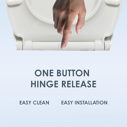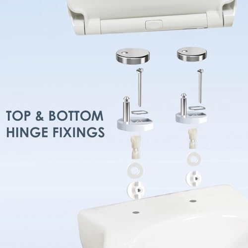 AQUALONA® Premium Thermoplastic Toilet Seat Soft Close Hardwearing Seat with One Button Hinge Release Oval Shaped Easy to Clean Simple Installation Top and Bottom Fittings (White - Oval Shaped)