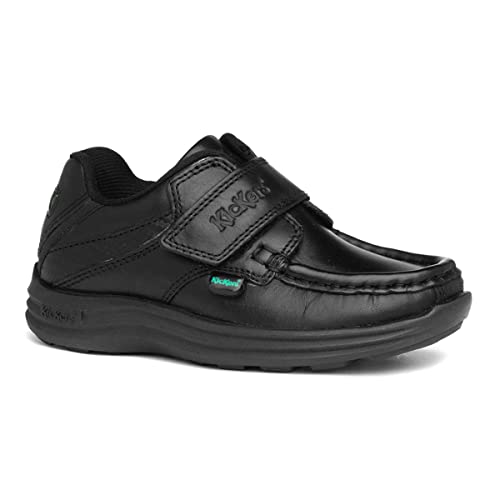 Kickers Junior Boy's Reasan Single Strap Black Leather School Shoes, Black, 2 UK