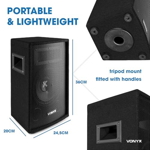 VONYX SL6 6” Passive DJ PA Speaker Pair, 250W Max Output, 2-Way Loudspeaker System, Bass Reflex, Piezo Horn Tweeter, Stage Monitor & Tripod Mount, Robust Black Carpet, For Parties, Events, Gigs