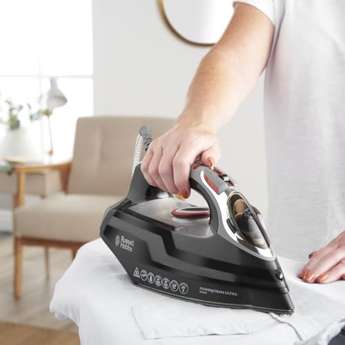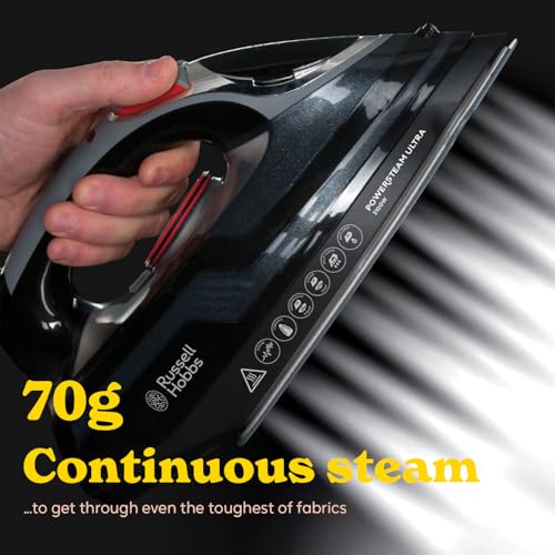 Russell Hobbs Steam Iron [3100W, 210 g/min extra steam boost, 70 g/min steam] Power Steam (350ml, ceramic soleplate, self-cleaning & spray water function, anti-limescale, drip stop) 20630