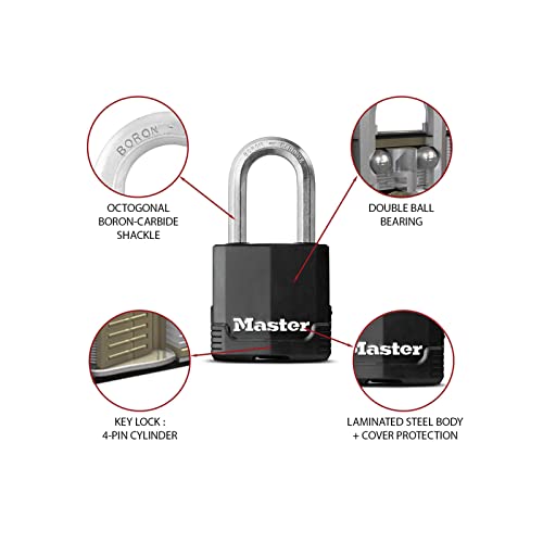 MASTER LOCK Heavy Duty Padlock, Security Level 9/10, Outdoor, Keyed, Covered Laminated Steel, Weatherproof and Rustproof, Large Shackle