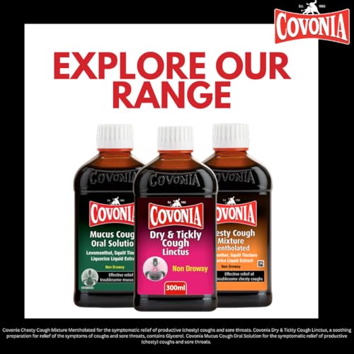 Covonia Dry & Tickly Cough Linctus Soothes And Provides Relief From Dry Coughs And Sore Throats Non Drowsy Cough Syrup Suitable For Vegetarians Cold And Flu Relief, 300ml (Always read Label First)