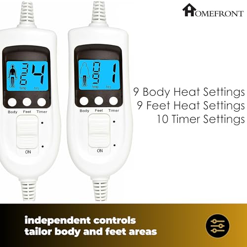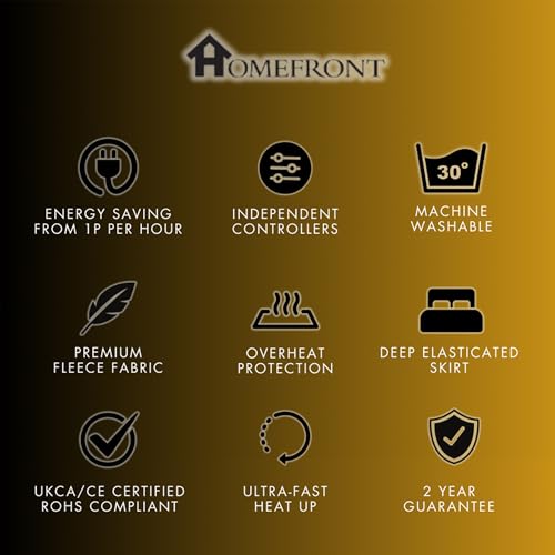 Homefront Electric Blanket Super King Bed Fleece Fitted Heated Mattress Cover - 203 x 182 x 40cm, Elasticated Skirt, Dual Controls, Overheat Protection, Individual Body and foot Control, Washable