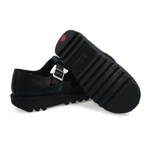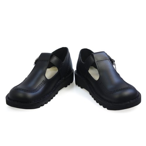 Kickers Women's Kick T Bar Black Leather School Shoes | Smart Everyday School Look | Everyday Comfort Fit, Cushioned for All-Day Wear, Black, 6 UK