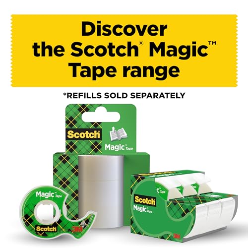 Scotch Tape Dispenser in Silver with 4 Rolls of Scotch Magic Tape 19mm x 33m - Ideal for School, Home and Office