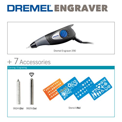 Dremel 290 Engraver - Compact Engraving Pen Tool with 3 Engraving Tips and 4 Craft Stencils for Engraving Wood, Metal, Ceramics, Plastic, Leather