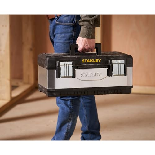 STANLEY Galvanised Toolbox with Heavy Duty Metal Hinge, Portable Tote Tray for Tools and Small Parts, 20 inch, 1-95-618