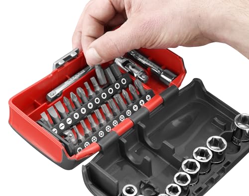 FACOM - 1/4 Inch Metric 6-Point Socket Set and Bits - Complete Tool Set - 38 Pieces with Ratchet, Sockets, Extensions, Gimbal, Handles - Storage Box 6 - R2NANO