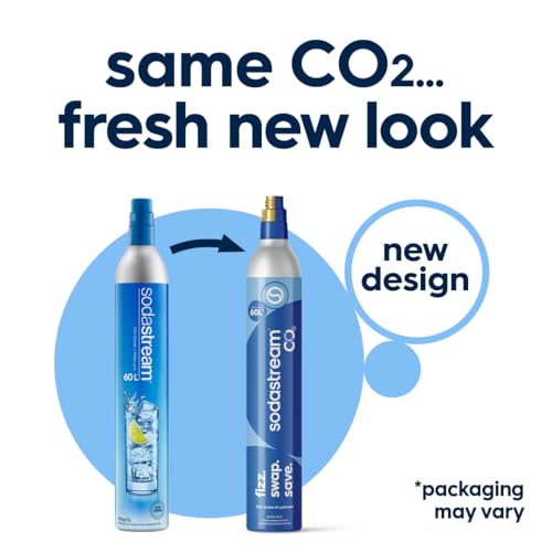 sodastream - CO2 Cylinder for Sparkling Water Maker, Blue Screw-in Gas System, Makes 60 Litres Fizzy Drinks, Compatible with Spirit, Crystal and Genesis, Reduce Plastic Waste, Aarke Compatible