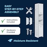 CASARIA® Naples Tall Bathroom Storage Cabinet | Slim Freestanding Bathroom Cupboard with 6 Adjustable Shelves | Narrow White Bathroom Storage Unit for Small Spaces, Hallway or Kitchen 180x30x30cm