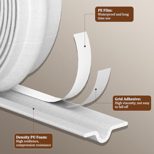Maudzlan 236 inch/6m Window Draft Blocker,Insect Proof Self-Adhesive Insulation Seal Strip Draught Excluder Sound Proofing Strip, Foam Tape for Windows Doors (White), (Maudzlan01)