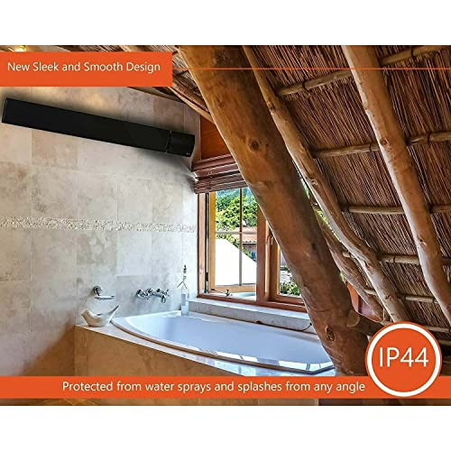 UKEW 1800W Infrared Bar Heater Wall Mounted | Black Electric Heater with Remote & Digital Display | IP44 Rated Outdoor & Indoor Infrared Panel Heating – Energy Efficient IR Comfort Heat Technology