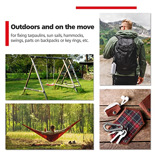 RAVN HAMAN Set of 6 Carabiner hooks 8 x 80 mm - Carabiner clips with snap lock with a load capacity of up to 230 kg - Snap hooks for key ring, hammock, punching bag, etc. - Galvanised steel