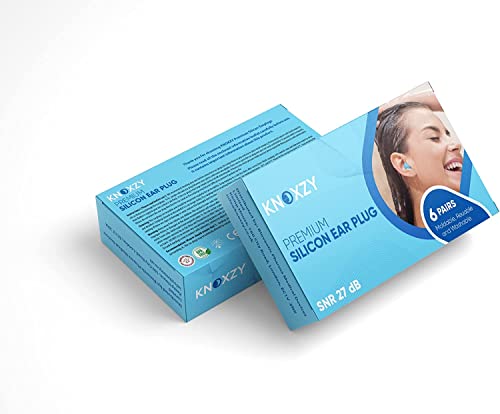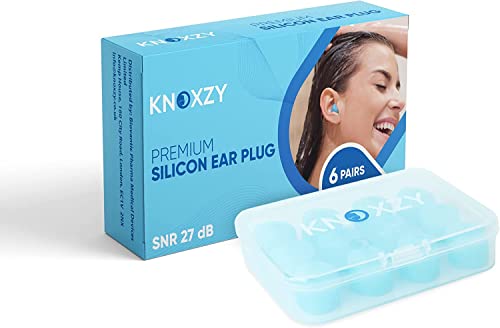 Knoxzy Silicone Ear Plugs for Sleeping Re-Usable Waterproof, SNR = 27dB Noise Cancelling Premium Moldable Ear Plugs for Sleeping, Travelling, Studying Noise Reduction Pack of 2