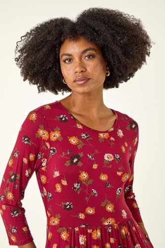 Roman Womens Floral Print Pocket Detail Midi Dress - Rust - Size 14 Uk