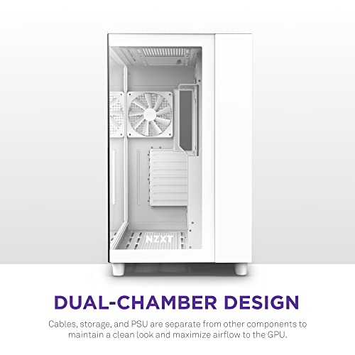 NZXT H9 Flow Dual-Chamber ATX Mid-Tower PC Gaming Case CM-H91FW-01 - High-Airflow Perforated Top Panel Tempered Glass Front & Side Panels 360mm Radiator Support Cable Management White