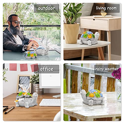 Grovind Outdoor Ashtray with Lid Smokeless Waterproof Ash Tray with Cute Turtle Decor, Indoor Ashtray for Cigarettes Home Office, Porch Patio Decorations